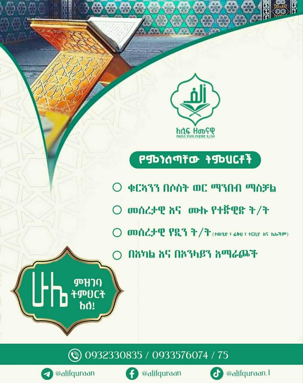 #አሊፍ_ዘመናዊ_የቁርዓን_እና_ተጅዊድ_ት/ቤት
