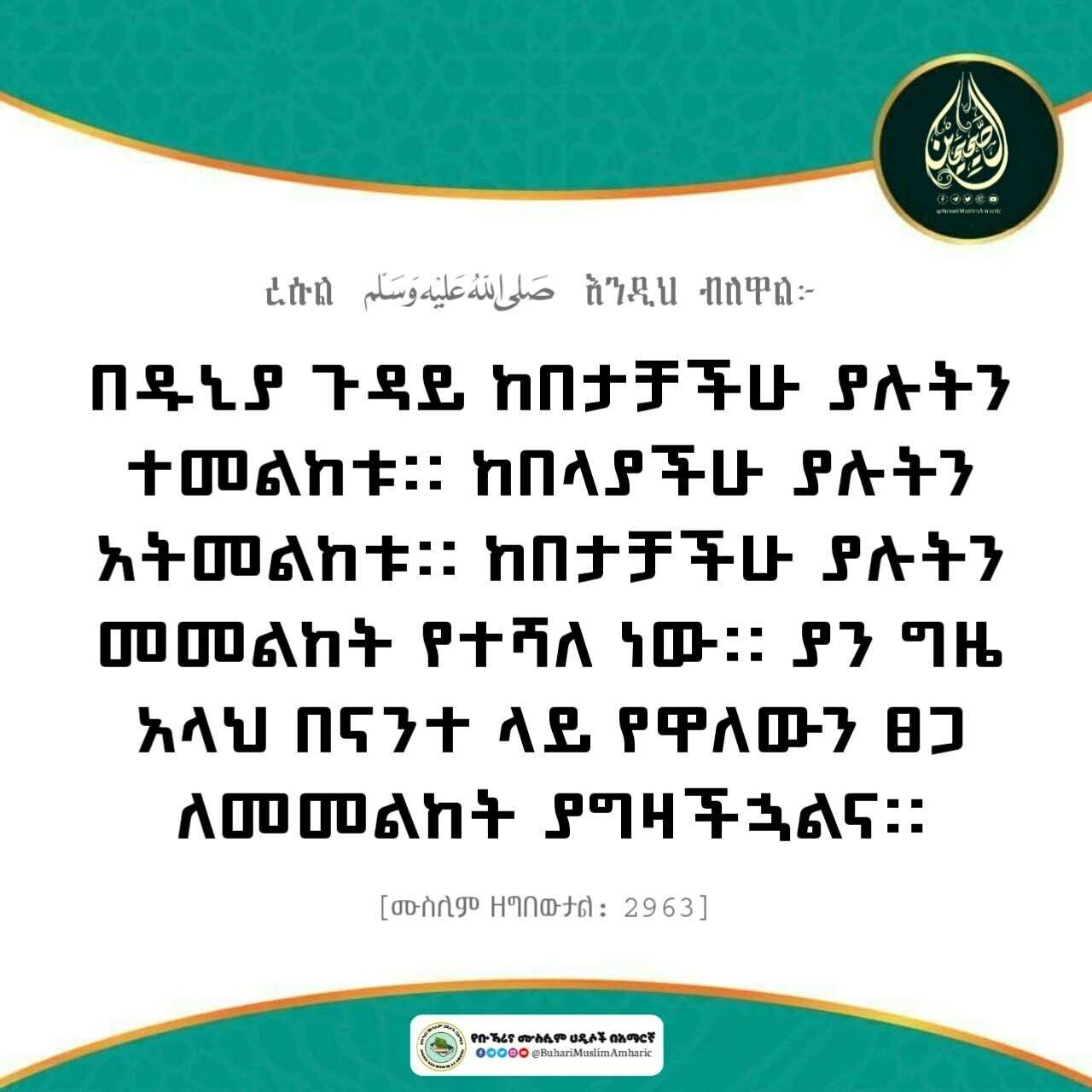 ከአቢ ሁረይራ - ረዲየላሁ ዐንሁ - ተይዞ የአላህ መልእክተኛ (ሶለላሁ ዐለይሂ ወሰለም) እንዲህ ብለዋል:-
