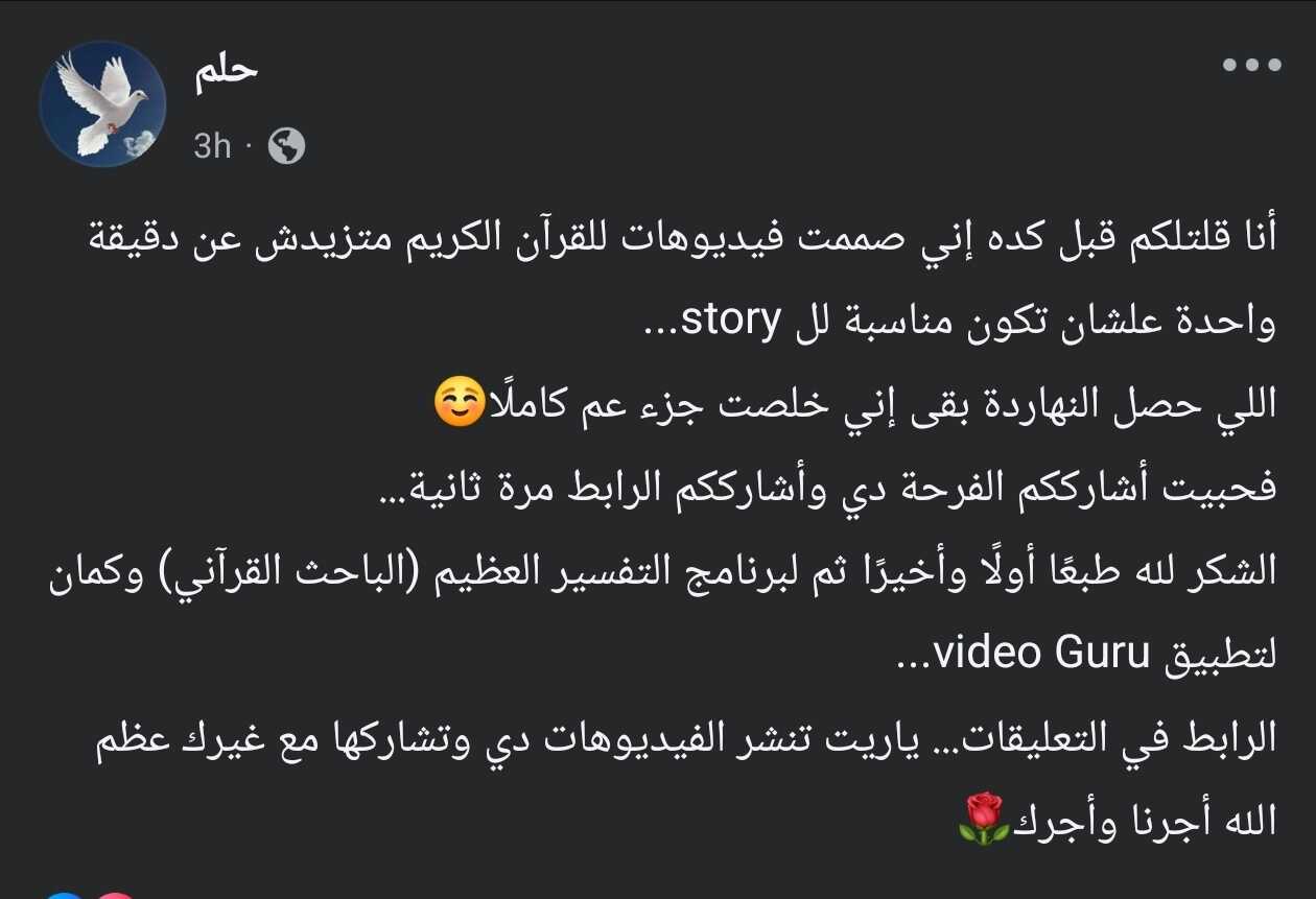 I told you before that I had created short videos of the Holy Qur’an, each no longer than one minute, so they’d be suitable for Stories…