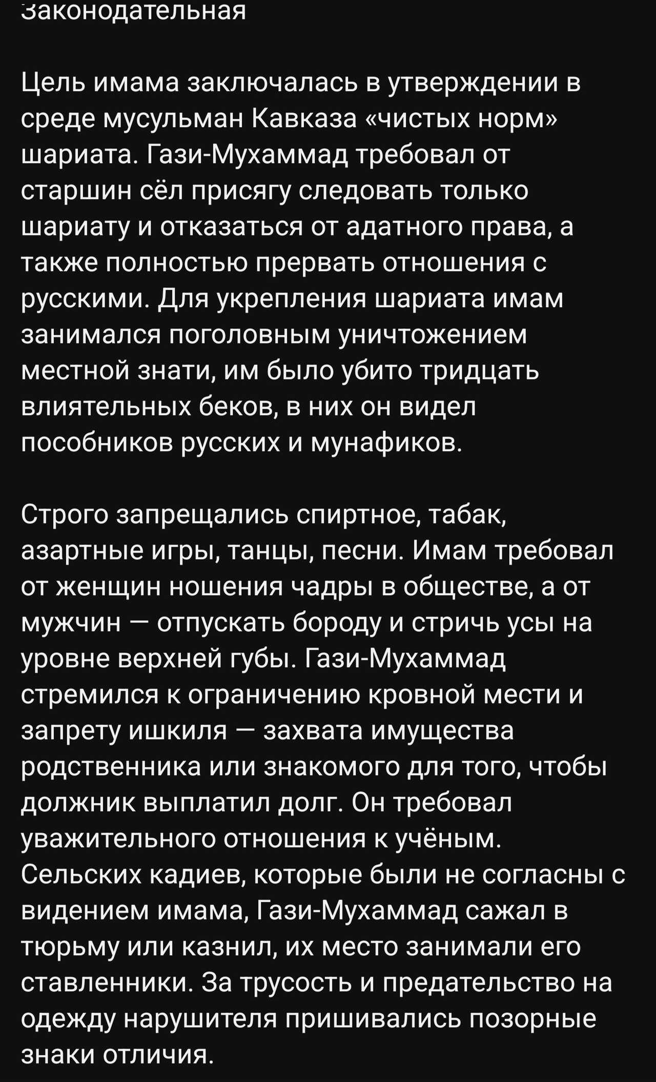 Источник: «Роль первого Имама на Кавказе Газимухаммада в воплощении Шариата и войне с Россией стр. 250, 1997 г.»