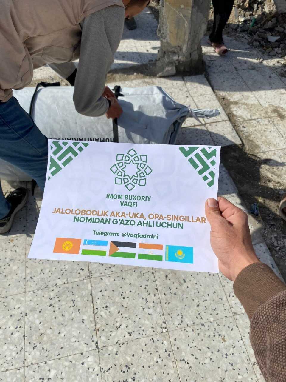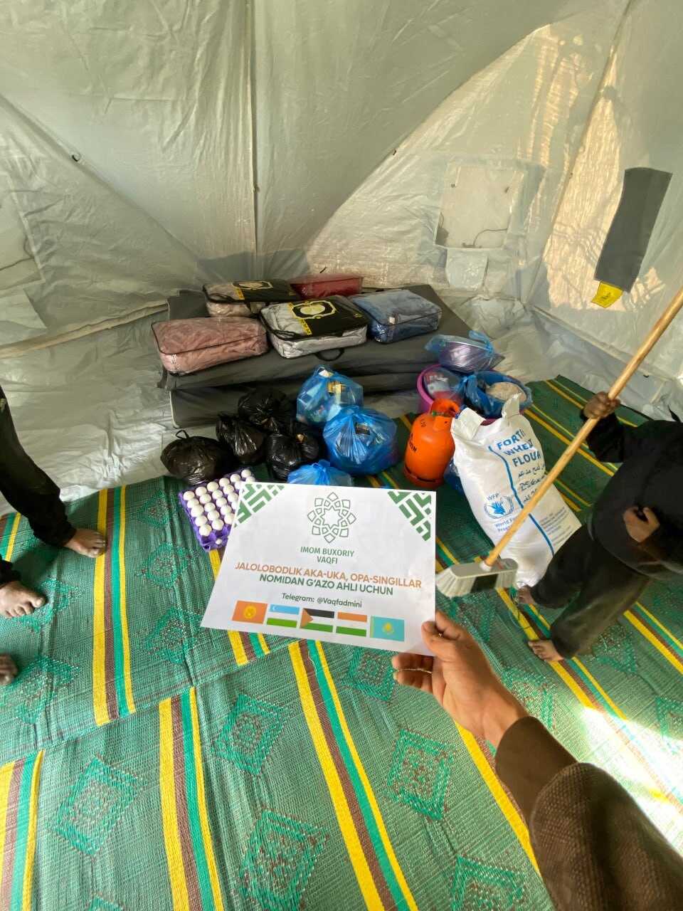✔️Allohning fazli hamda Jalolobodlik aka-uka, opa-singillar nomidan kelgan ehsonlarga G'azo shimolida og'ir sharoitlarda kun kechirayotgan bir oilaga zarur bo‘lgan barcha kerakli yordamlar birgalikda taqdim etildi