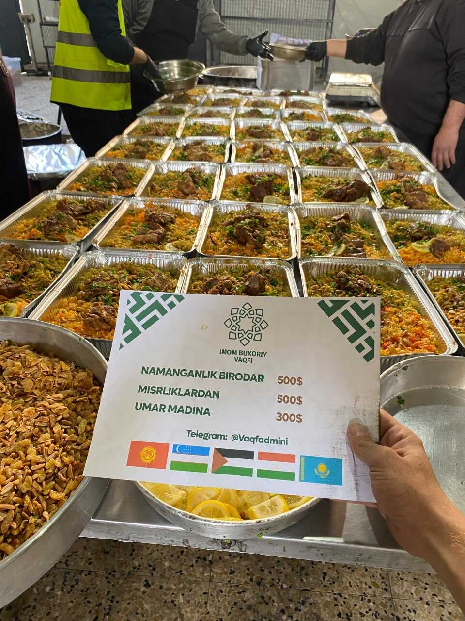 ✔️Allohning fazli bilan Misrlik birodarlar, Namanganlik birodarlar hamda Umar va Madina nomidan G'azodagi qochqin oilalarga yana 120 kishilik go'shtli palov tarqatildi