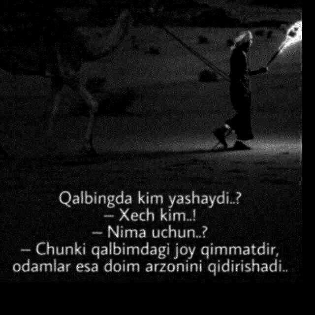 Assalom Aleykum birodarim. nimani qidiryapsan? qo'lingdagi "matog'ing"ga bunchalar mushtaraksan-a!? Agar hali yosh bo'lsang, Alloh umr bergan bo'lsa, bu dunyoning tamidan tatib ko'rasan. Deylik, juft toparsan,baxtli oilang, farzandlaring ham bo'lar İn Shaa Alloh, va yana mol dunyo ham to'plashing mumkin. Keyinchi, xohlasang taxmin qilib ko'rishim mumkin. Aytaylik 60 yoshdan o'tganingda yuzingdagi ajinlar seni qayg'uga sola boshlaydi, birin ketin tanangda og'riqlar sezila boshlaydi, ha to'g'ri eshitding "og'riqlar". Kechalari bilan bo'ladigan davomli og'riqlar. Nega aynan og'riq haqida gapirdim bilasanmi? Chunki, o'sha paytda tushunib yetasan bu dunyoning qanchalar la'natlangan ekanini. "Qarib quyilmagan CHOL yokida yuzlari osilib qolgan KAMPIR" bu dunyodagi orzu havaslaring oxiri mana shu satrlar bilan tugaydi. Keyinchi? Keyin nima xam bo'lar edi, o'lasanda birodar! O'liming bir kuni seni topadi. Fursat borida bu chirkin dunyoga qo'l siltagin. Baribir hech nima olib ketolmaysan. Abu Bakr roziallohu anhu aytgan so'zlarni o'qigin: "Eh, qaniydi musulmon bandagi badanidagi bitta tuki bo'lib qolsaydim, qaniydi ko'kat bo'lib qolsam yerdagi, hayvonlar yeb ketadigan..." , menimcha oz bo'lsada meni tushunding deb o'ylayman. shundog'am ko'p yozib yubordim.Oxirigacha o'qigan bo'lsang demak sendan yaxshi suhbatdoshsan. Allohga omonat, o'zingni ehtiyot qilgin birodarim seni yaxshi ko'raman.