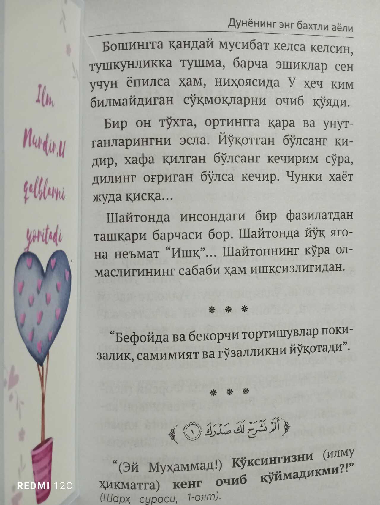 "Bir on toʻxta, ortingga qara va unutganlaringni esla. Yoʻqotgan boʻlsang qidir, xafa qilgan boʻlsang kechirim soʻra, diling ogʻrigan boʻlsa kechir.Chunki hayot juda qisqa..."