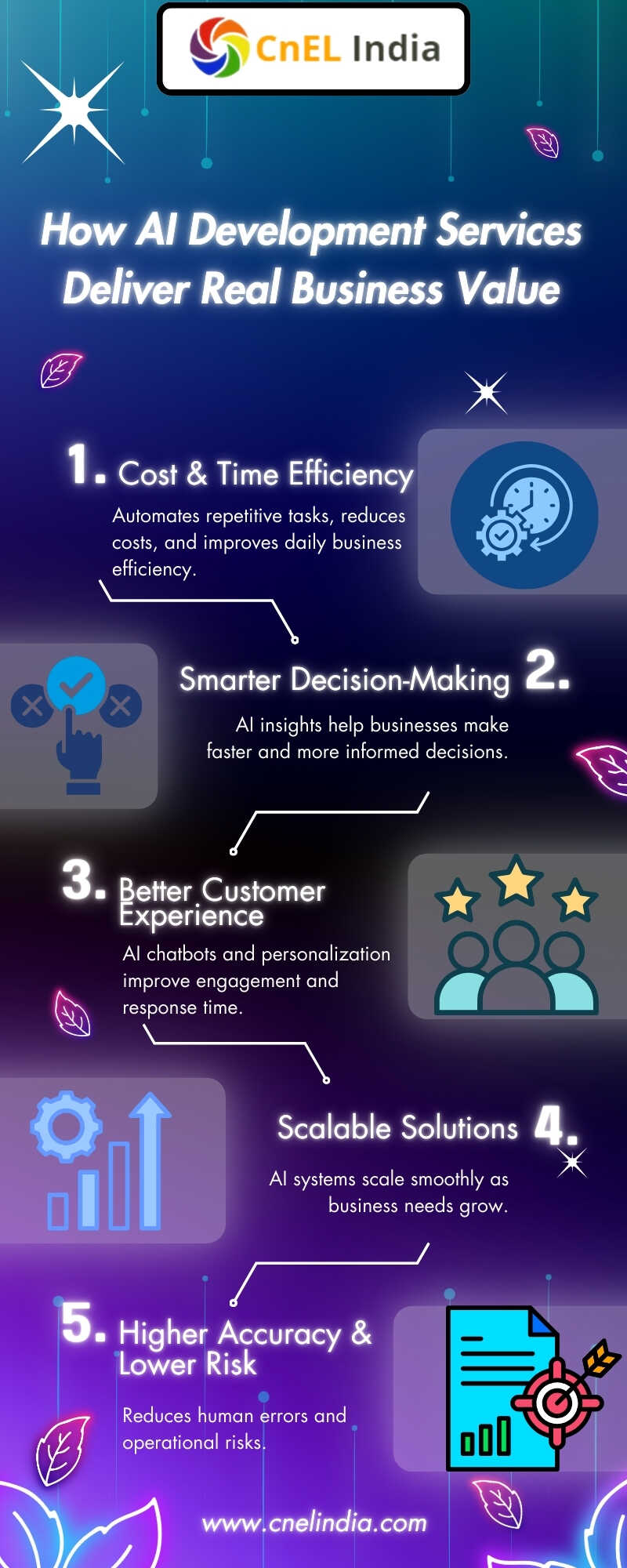 Manual work slows growth and increases costs. AI Development Services automate processes, improve accuracy, and help businesses scale faster with intelligent, data-driven solutions. For more information visit :- https://cnelindia.com/ai-development-services.html