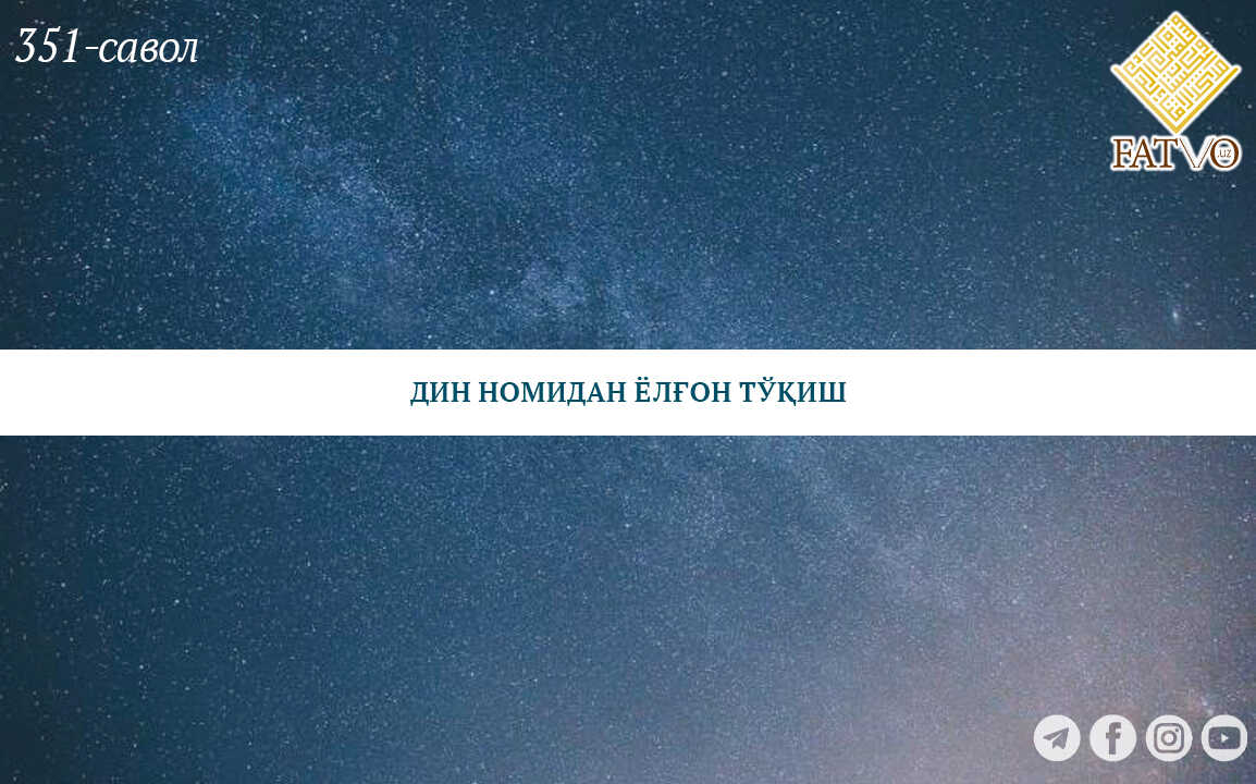 ДИН НОМИДАН ЁЛҒОН ТЎҚИШ