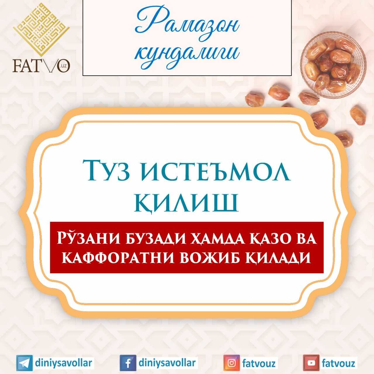 Ўзбекистон мусулмонлари идораси қошидаги Фатво марказининг расмий саҳифасига хуш келибсиз! ©Каналдан маълумот олинганда манба кўрсатилиши шарт. Колл марказ рақами: +998781503344