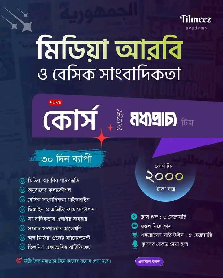 এ বছর ঠিক একই উদ্দেশ্যে এবং আরও বড় পরিসরে কোর্সটা শুরু করছি। এখানে কাজ করতে আগ্রহী তরুণদের আমি আমন্ত্রণ জানাচ্ছি। বিশেষত মাদরাসার ছাত্রদের, যারা আরবি ভাষা পারেন। আশা করি, সুফল পাবেন।