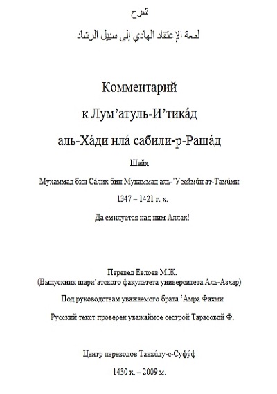 Перевод книги, которая является комментарием к труду «Лум’атуль-И’атикáд аль-Хáди илá сабили-р-Рашáд», написанному Шейхом Ибну Куддáмой.