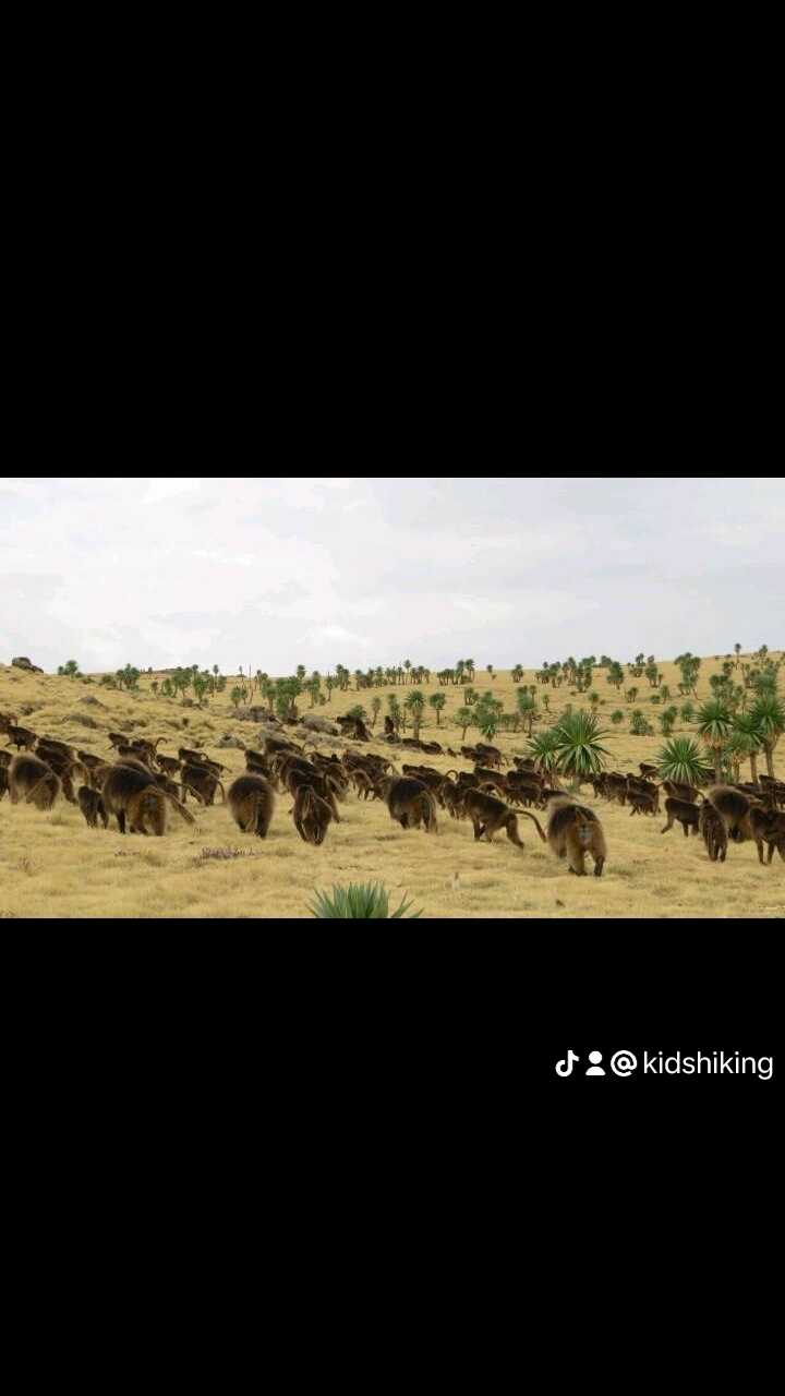 Majestic Simien Mountains, with a huge group of Chelada Baboon.