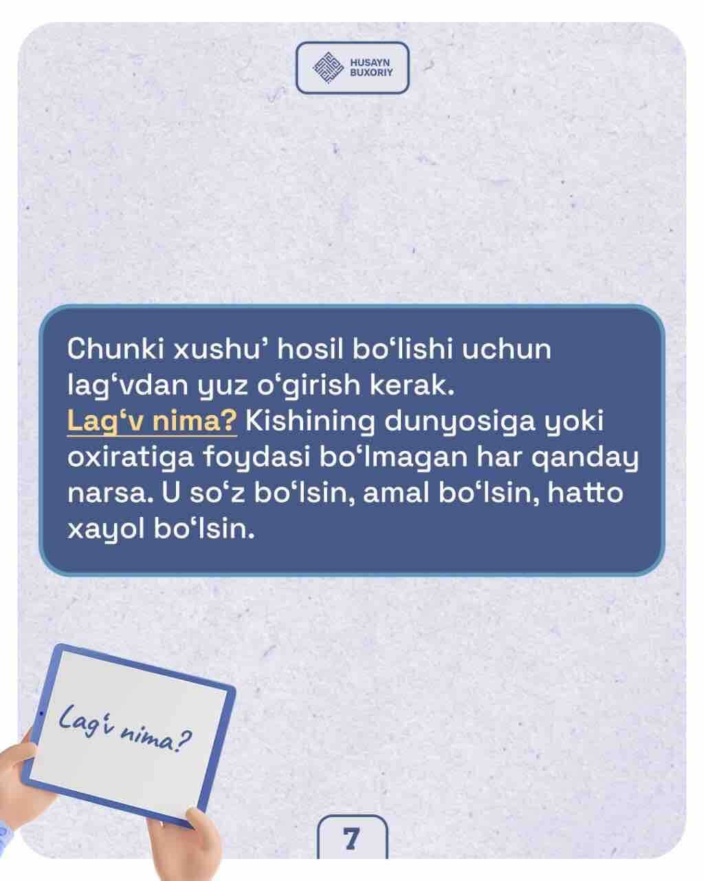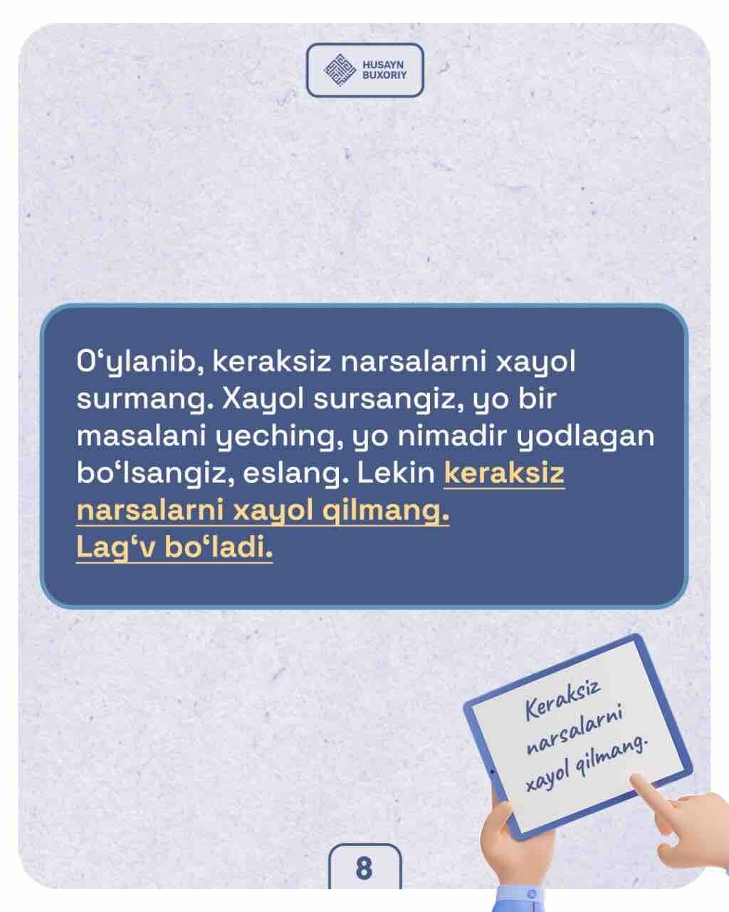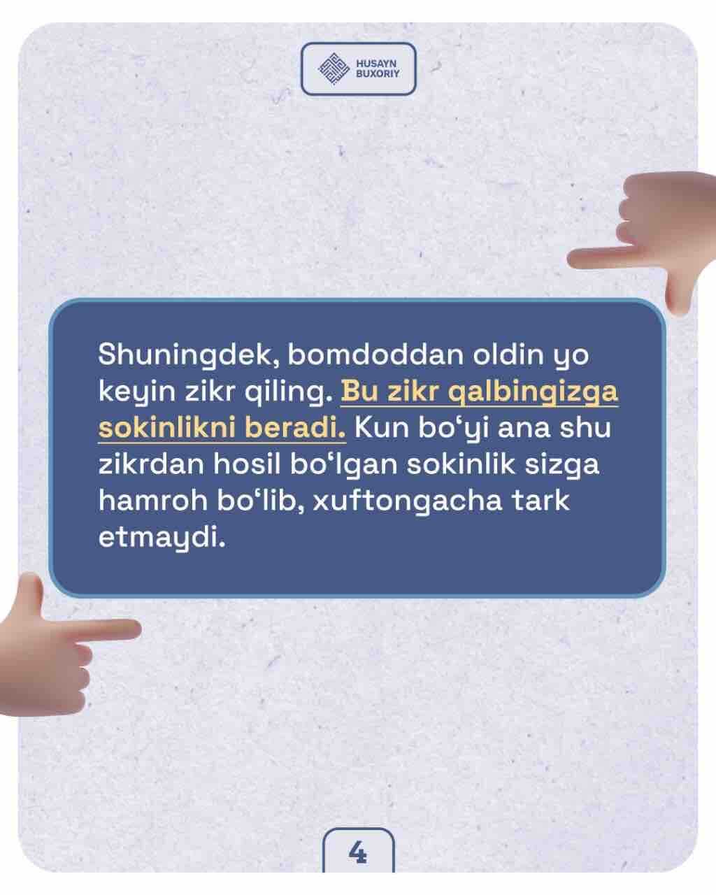 ✅ Ustozimiz Husayn Buxoriydan xushuʼ va huzuʼni hosil qilishda qiynalayotganlar uchun ikki tavsiya.