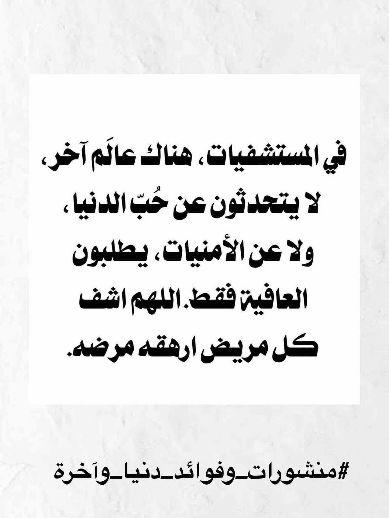 في المستشفيات هناك عالم آخر لا يتحدثون عن حب الدنيا ولا عن الأمنيات يطلبون العافية فقط اللهم اشف كل مريض ارهقة مرضه