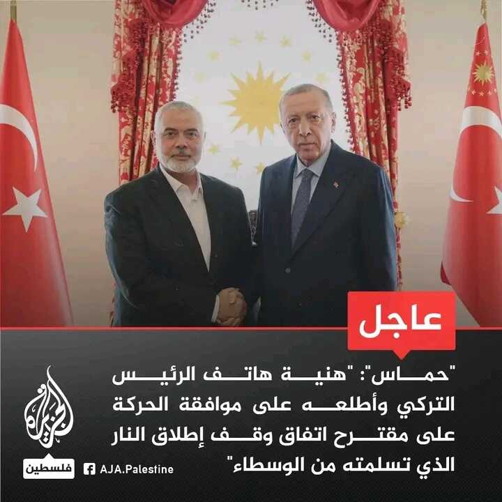 ሃኒዬህ ለቱርክን ፕሬዝዳንት ደውሎ ከሸምጋዮቹ የቀረበውን የተኩስ አቁም ስምምነት ሃሳብ ንቅናቄው ማፅደቁን አሳወቀው።