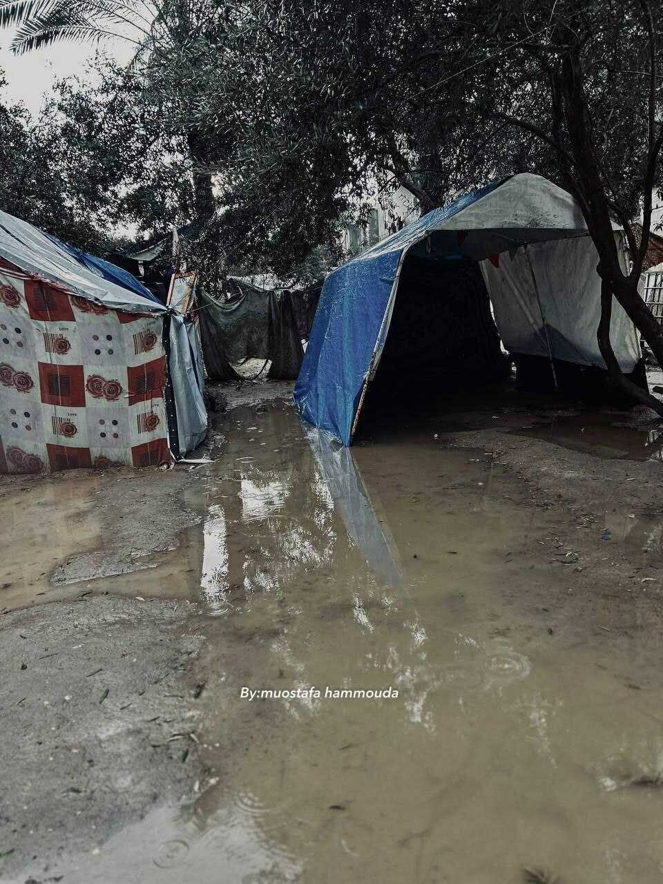 Ғазодаги тинч аҳоли бир неча ҳафтадан бери сув остида қолган бу чодирларда қолмоқда.