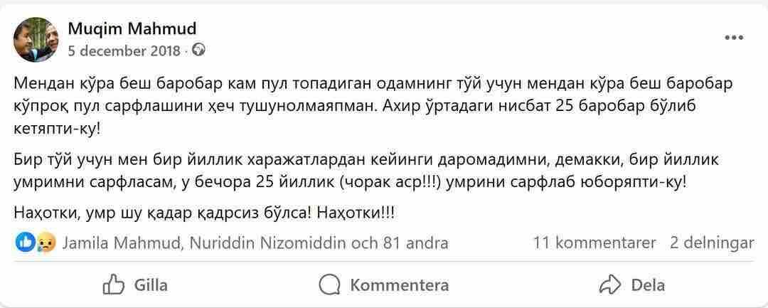 Шу гапни ёзганимга 6 йилдан ошибди. Миллат ҳолини забун қилаётган иллатлардан бири мана шу орзу-ҳаваслар, кераксиз ва маъносиз борди-келдилар, олди-бердилар.