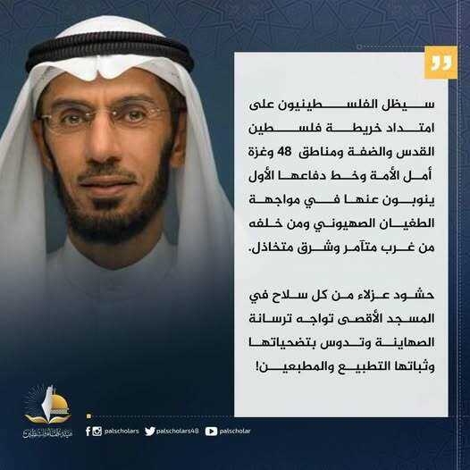 سيظل الفلسطينيون على امتداد خريطة فلسطين القدس والضفة ومناطق 48 وغزة أمل الأمة وخط دفاعها الأول ينوبون عنها في مواجهة الطغيان الصهيوني ومن خلفه من غرب متآمر وشرق متخاذل.
