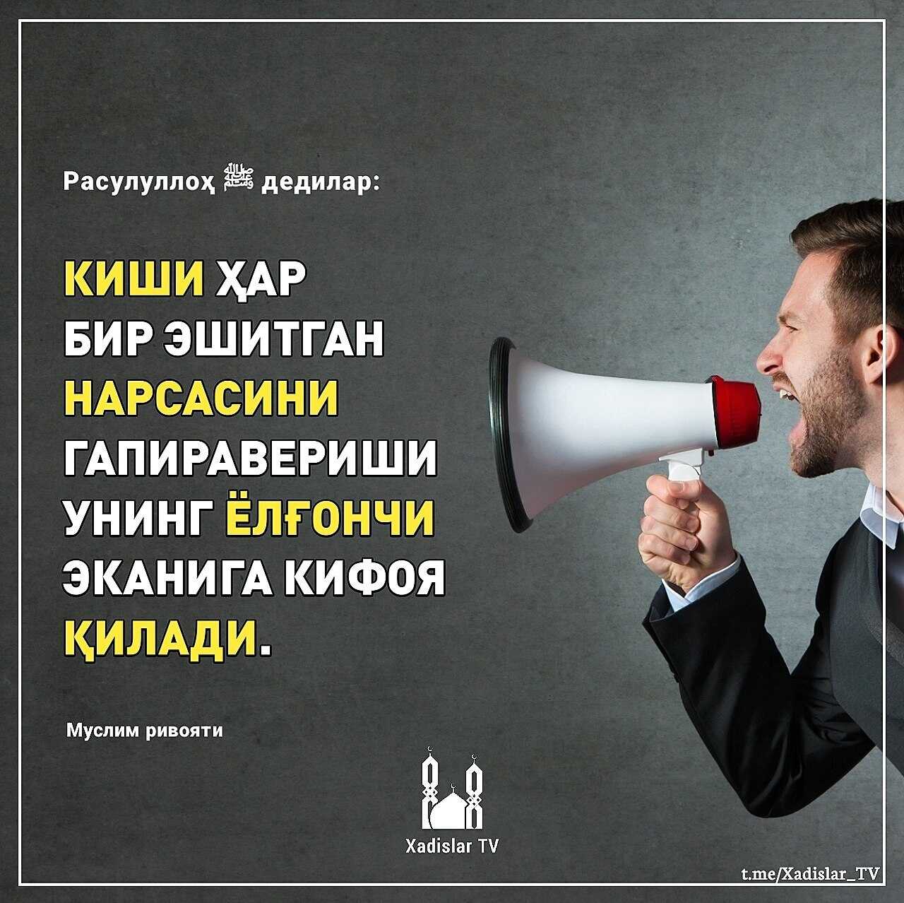 📚Расулуллоҳ ﷺ дедилар: «Киши ҳар бир эшитган нарсасини гапиравериши унинг ёлғончи эканига кифоя қилади».