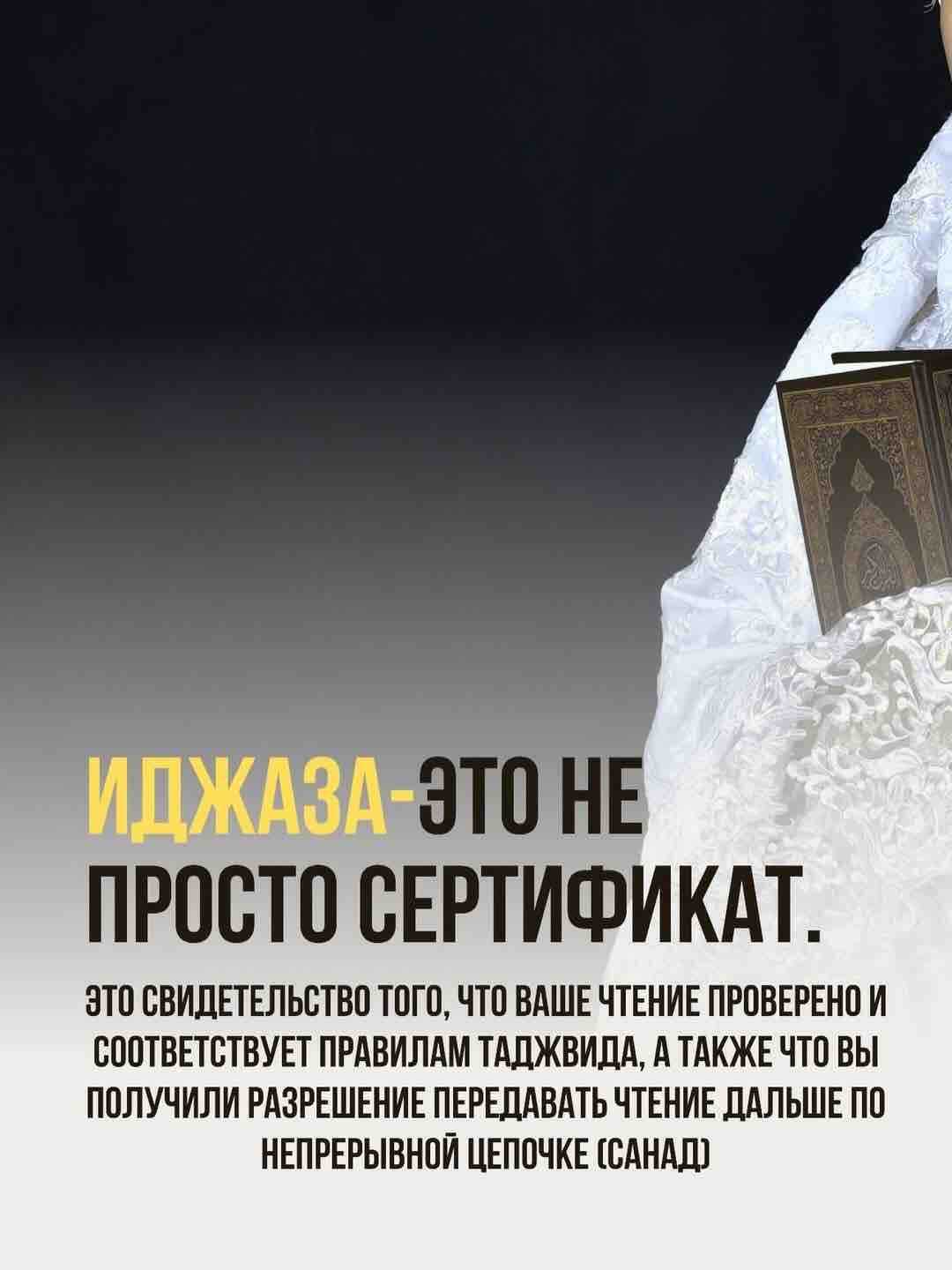 По окончанию всего Корана, устаза выдает вам Иджазу Устаза арабка. Подробнее о ней, можете почитать в закрепе «Устазы»