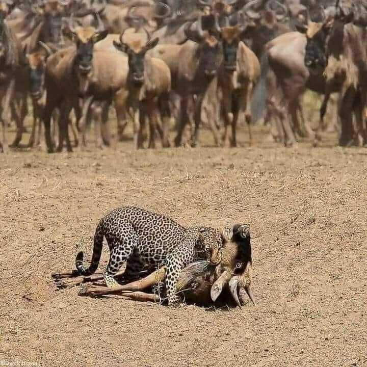 «እያንዳንዳቸው ቢረግጡት ወይም ቢወጉት አቦሸማኔው ይሞት ነበር። ነገር ግን ቀጣዩ ታዳኝ ተራ እስኪደርሰው ድረስ ዳር ላይ ቆመው ከበው ይመለከታሉ።»