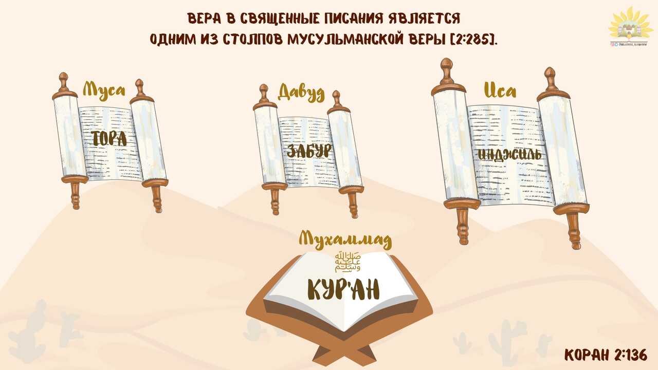 Скажите: «Мы уверовали в Аллаха, а также в то, что было ниспослано нам и что было ниспослано Ибрахиму (Аврааму), Исмаилу (Измаилу), Исхаку (Исааку), Йакубу (Иакову) и коленам (двенадцати сыновьям Йакуба), что было даровано Мусе (Моисею) и Исе (Иисусу) и что было даровано пророкам их Господом. Мы не делаем различий между ними, и Ему одному мы покоряемся». (2:136)