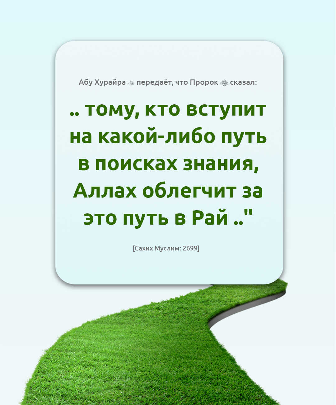 🔸Абу Хурайра (да будет доволен им Аллах) передаёт, что Пророк (мир ему и благословение Аллаха) сказал: ".. тому, кто вступит на какой-либо путь в поисках знания, Аллах облегчит за это путь в Рай .."