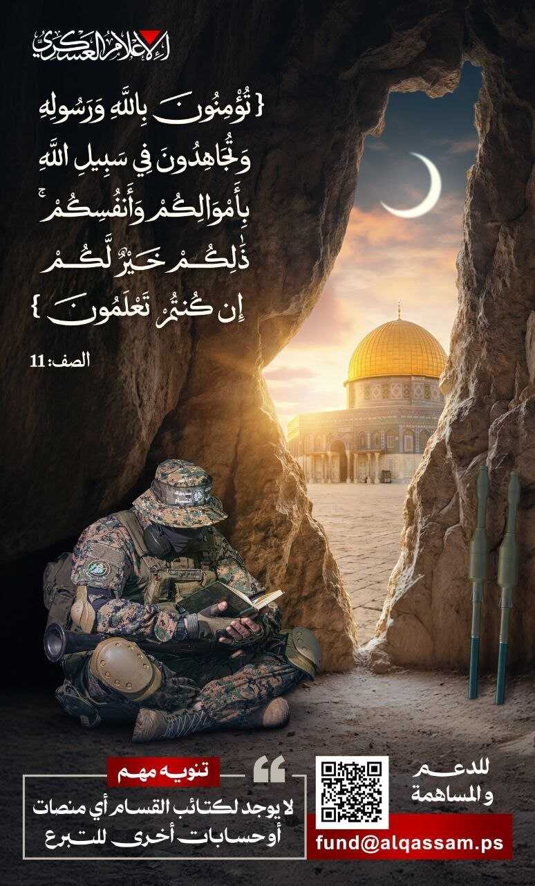📬 لتأدية واجب النصرة والإسناد لإخوانكم المجاهدين؛ التواصل حصراً عبر البريد الإلكتروني الرسمي والوحيد الخاص بالمساهمة والدعم لكتائب القسام: