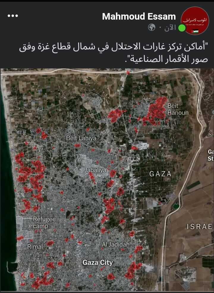 "أماكن تركز غارات الاحتلال في شمال قطاع غزة وفق صور الأقمار الصناعية".