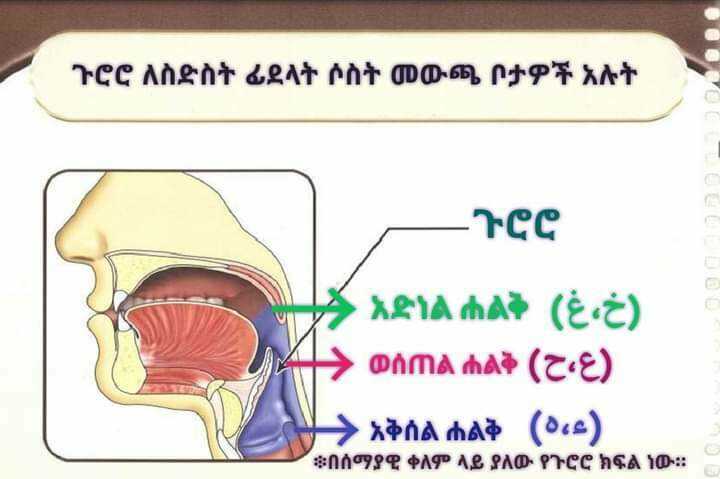➭የፊደላት መውጫ ቦታ 17 ሲሆን ዋና ዋናዎቹ 5 ናቸው።