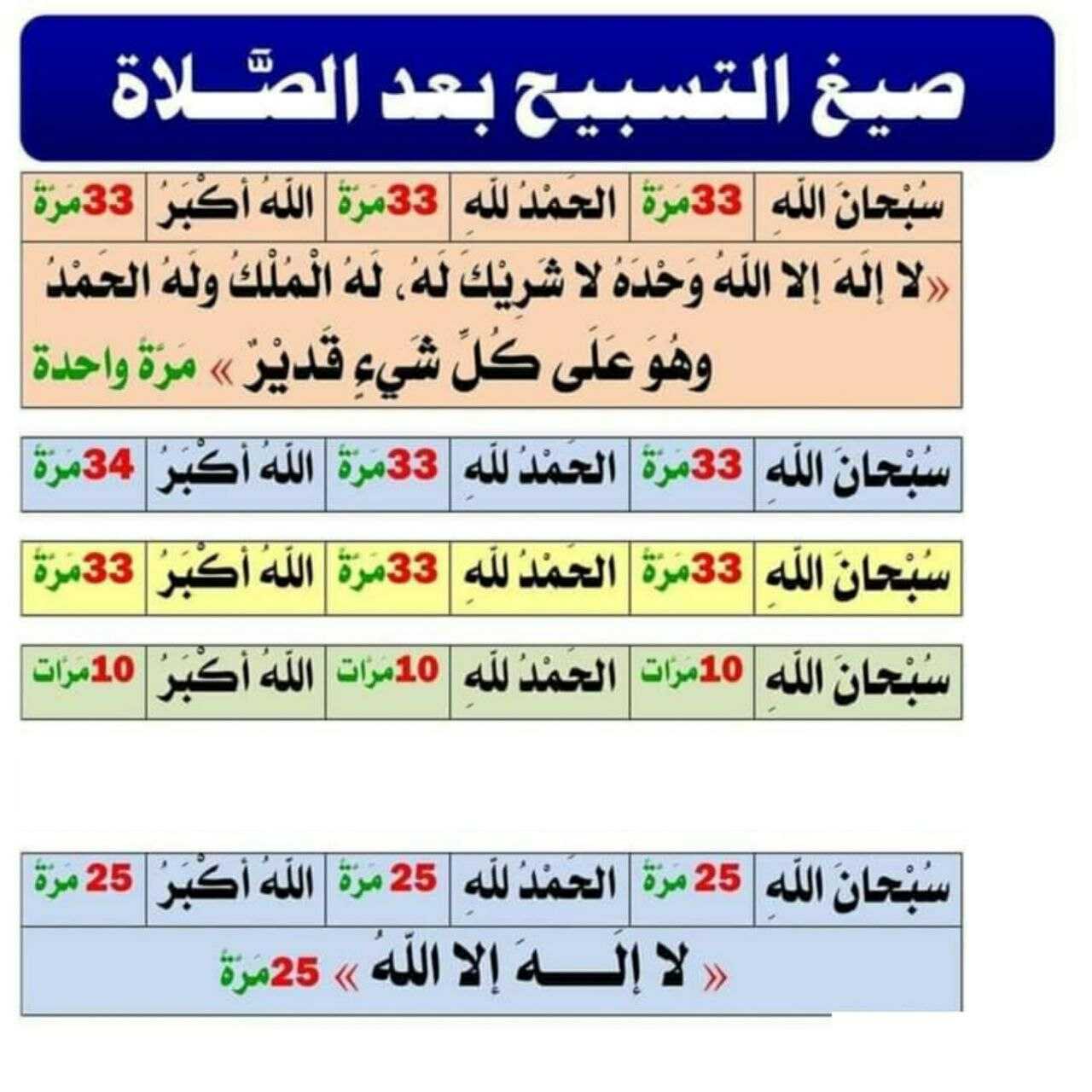 صيغة التسبيح بعد الصلاة