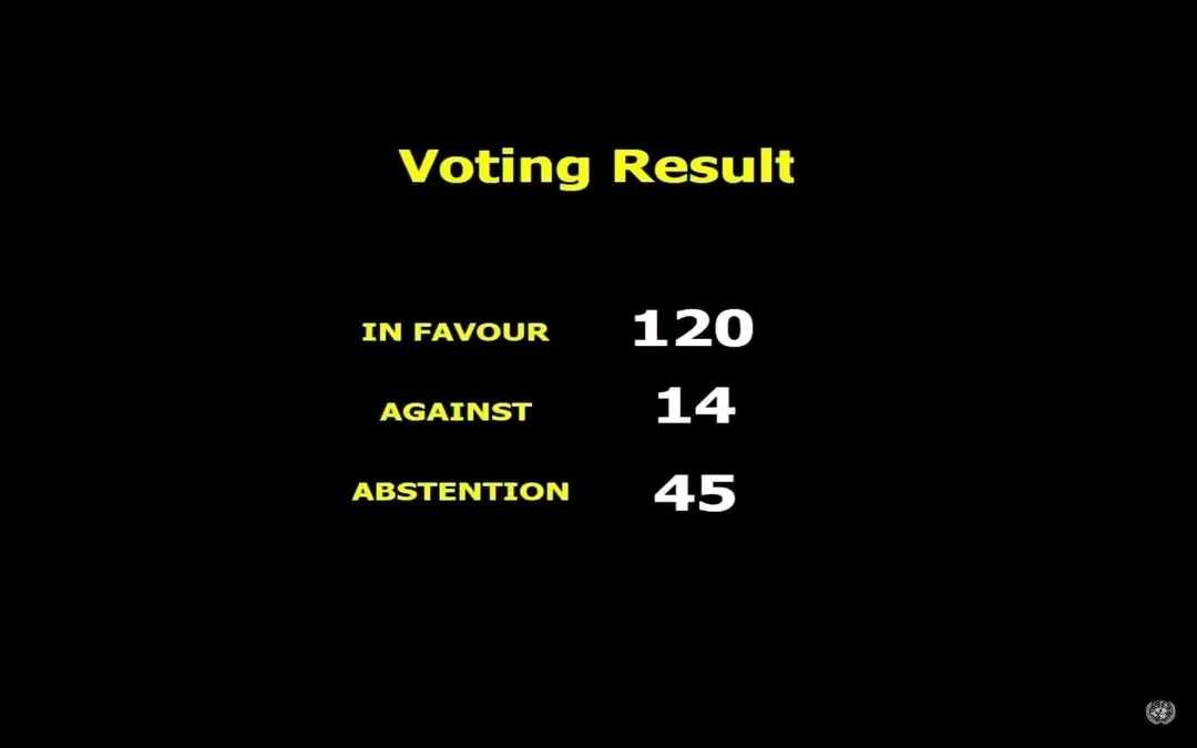 የተባበሩት መንግስታት ጠቅላላ ጉባኤ በጋዛ ቀውስ ላይ "የንፁሃን ዜጎች ጥበቃ እና ህጋዊ እና ሰብአዊ ግዴታዎችን በማክበር" ዙሪያ ላይ የውሳኔ ድምፅ የሰጠ ሲሆን