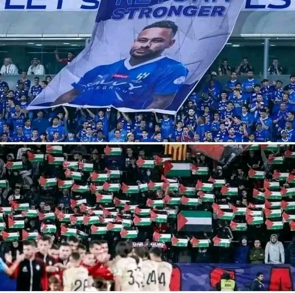 ከላይ የምትመለከቱት የሳኡዲ እግርኳስ ደጋፊዎች ለኔይማር " በቶሎ ተመለስ " በማለት ድጋፋቸውን ሲያሳዩ ሲሆን