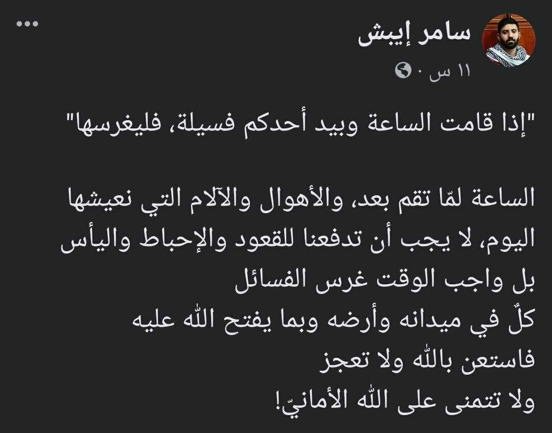 هذا وقت الثبات علىٰ الثغور، وبذل الجهد والوقت وكل ما أمكن مؤازرة ونصرة لإخواننا وتجارة مع من لا خسارة بالتجارة معه سبحانه وتعالىٰ.