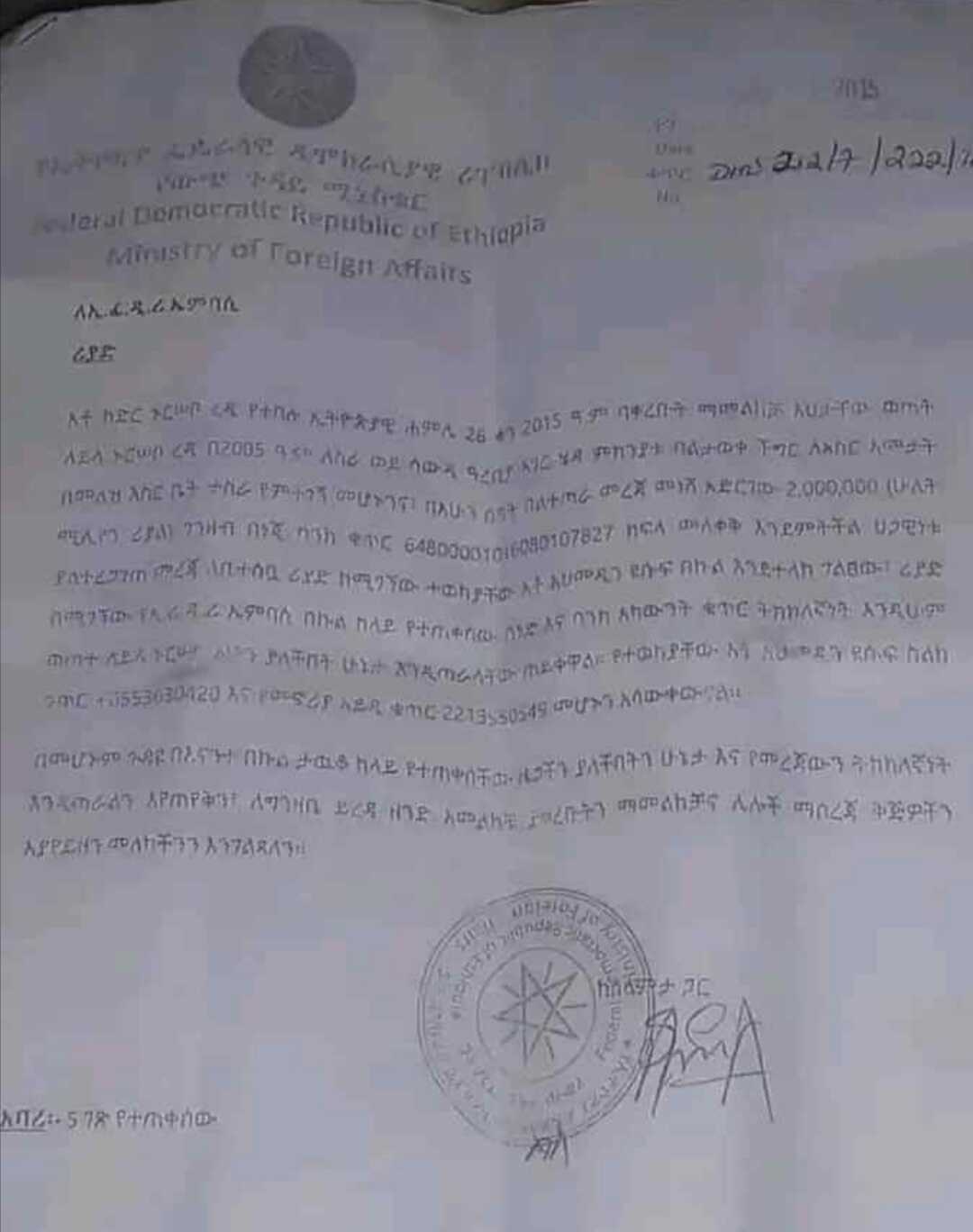እህታችንን ከእስር ቤት ለማውጣት 2 ሚሊዮን የሳውዲ ሪያል በኢትዮጵያ 60,000,000 ብር ተጠይቋል ይህንንም በአንድ ዓመት ውስጥ አስገቡ ተብሏል ።