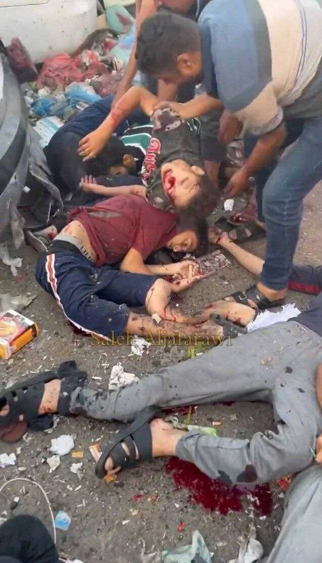 من أمام بوابة مستشفى الشفاء بغزة الآن .. شهداء أطفال ونساء .