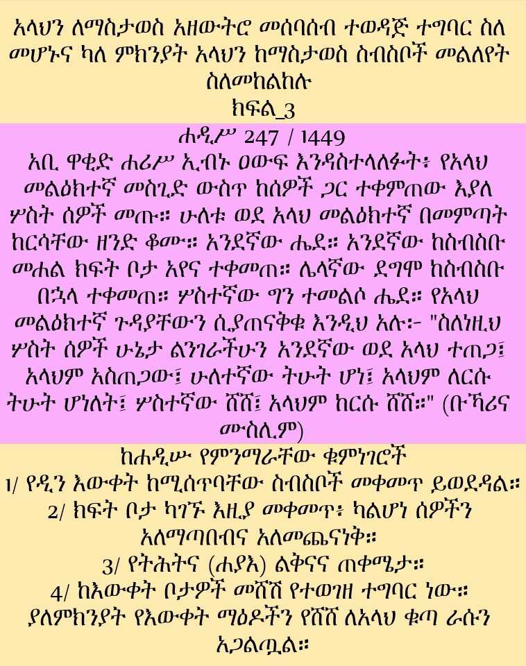 1/ የዲን እውቀት ከሚሰጥባቸው ስብስቦች መቀመጥ ይወደዳል።