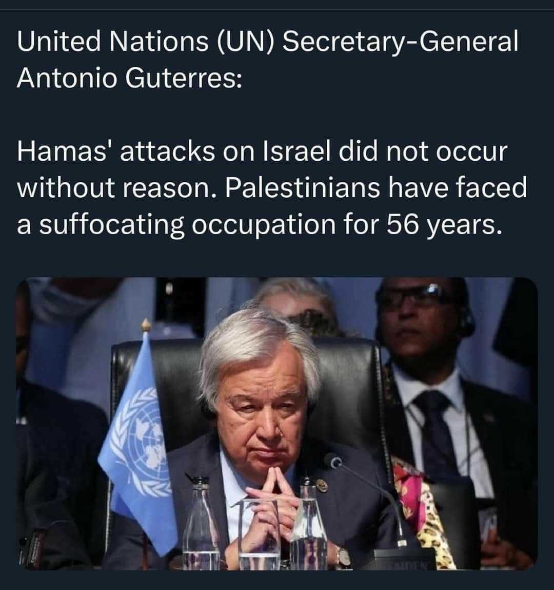 "ሃማስ በእስራኤል ላይ ያደረሰው ጥቃት ያለምክንያት አይደለም ፍልስጤማውያን ለ56 አመታት የታፈነ ወረራ ገጥሟቸዋል።"