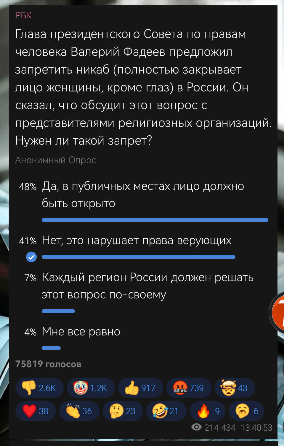 Давайте поможем нашим братьям и сёстрам отстоять своё право на свободу вероисповедания. Голосуйте за второй вариант. Пусть Всевышний Аллах поможет нам всем, аминь 🤲