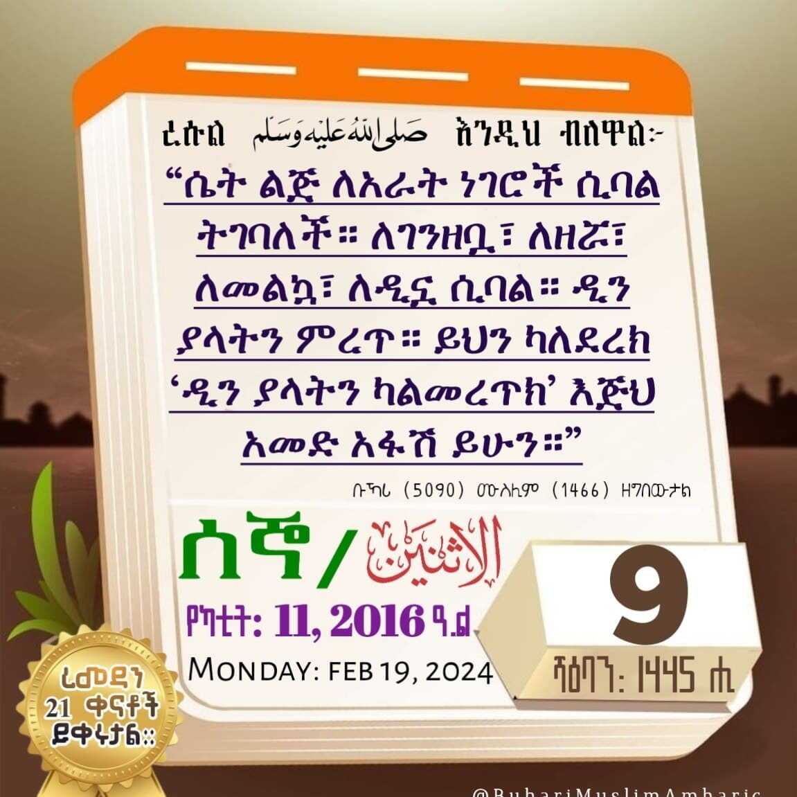 #አልስነይን 0️⃣9️⃣ #ሻዕባን 1⃣4⃣4⃣5⃣ ሂ