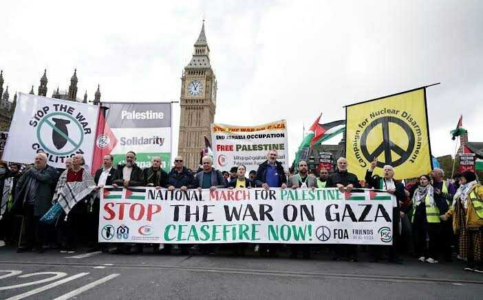 በእንግሊዝ የሚደረገው የፍልስጤማውያን የድጋፍ ሰልፍ የእንግሊዝ መንግስትን ወንበር እየነቀነቀው ። ትውልደ ህንዳዊው ሪሺ ሱናክ የሚመራው የእንግሊዝ መንግስት ለእስራኤል የማያወላውል ድጋፍ ሲሰጥ መቆየቱ ይታወቃል ። ጠቅላይ ሚኒስትር ሪሺ ሱናክም እስራኤል ድረስ በመሄድ " ብቻሽን አይደለሽም እንግሊዝ ከጎንሽ አለች " ብሎ የመሰረተቻት ሀገር አሁንም እንደማትተዋት ገልፆ ወደ እንግሊዝ ሲመለስ ግን የገጠመው የእንግሊዝ ህዝብ ቁጣን ነው ።