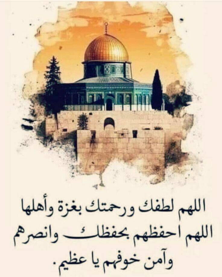 اللهم بارك جهاد المجاهدين في غزة و فلسطين، وأيدهم بجنودك ونصرك يا قوي يا كريم. اللهم انصر إخواننا المجاهدين في غزة وفلسطين، اللهم كن لهم ولا تكن عليهم. اللهم انتقم من أعدائهم، واقذف الرعب في قلوبهم وردّ كيدهم في نحورهم. اللهم انصر المرابطين المستضعفين من أهل غزة وفلسطين