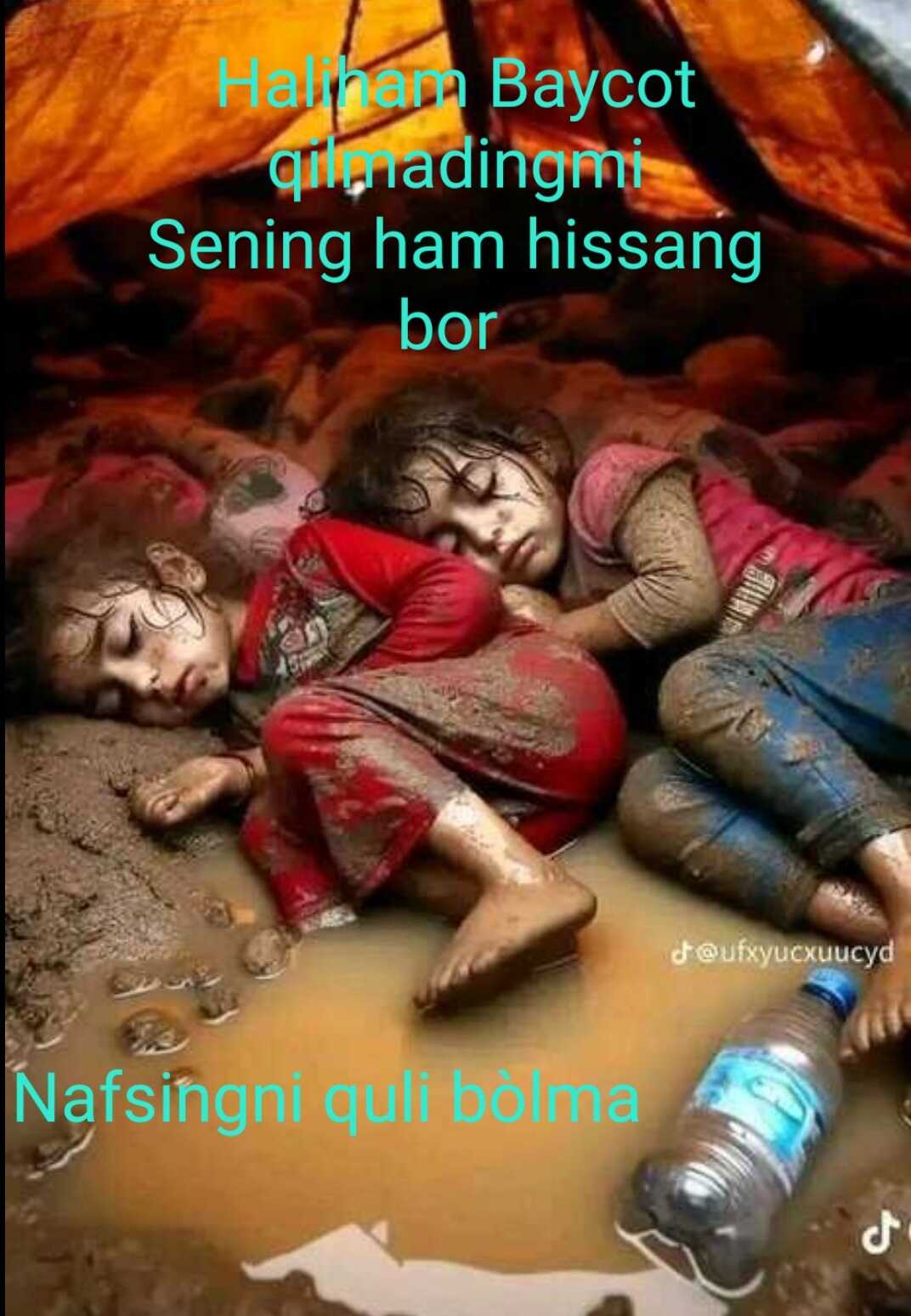 Ĝazzolik bir Muslima sòzlamoqda: Arab davlatlari qani Musilmonlar qani nega yordam berishmayabti nega bizni unitib qòyshdi? Allohga qasam biz charchadik yaqinlarimizni yoqotishdan ochlikdan qiynalib ketdik har kuni sarsonmiz bir kun bir joyda qololmaymiz Allohga qasam sillamiz quridi tezroq òlsaydik bu azobdan qutilardik.