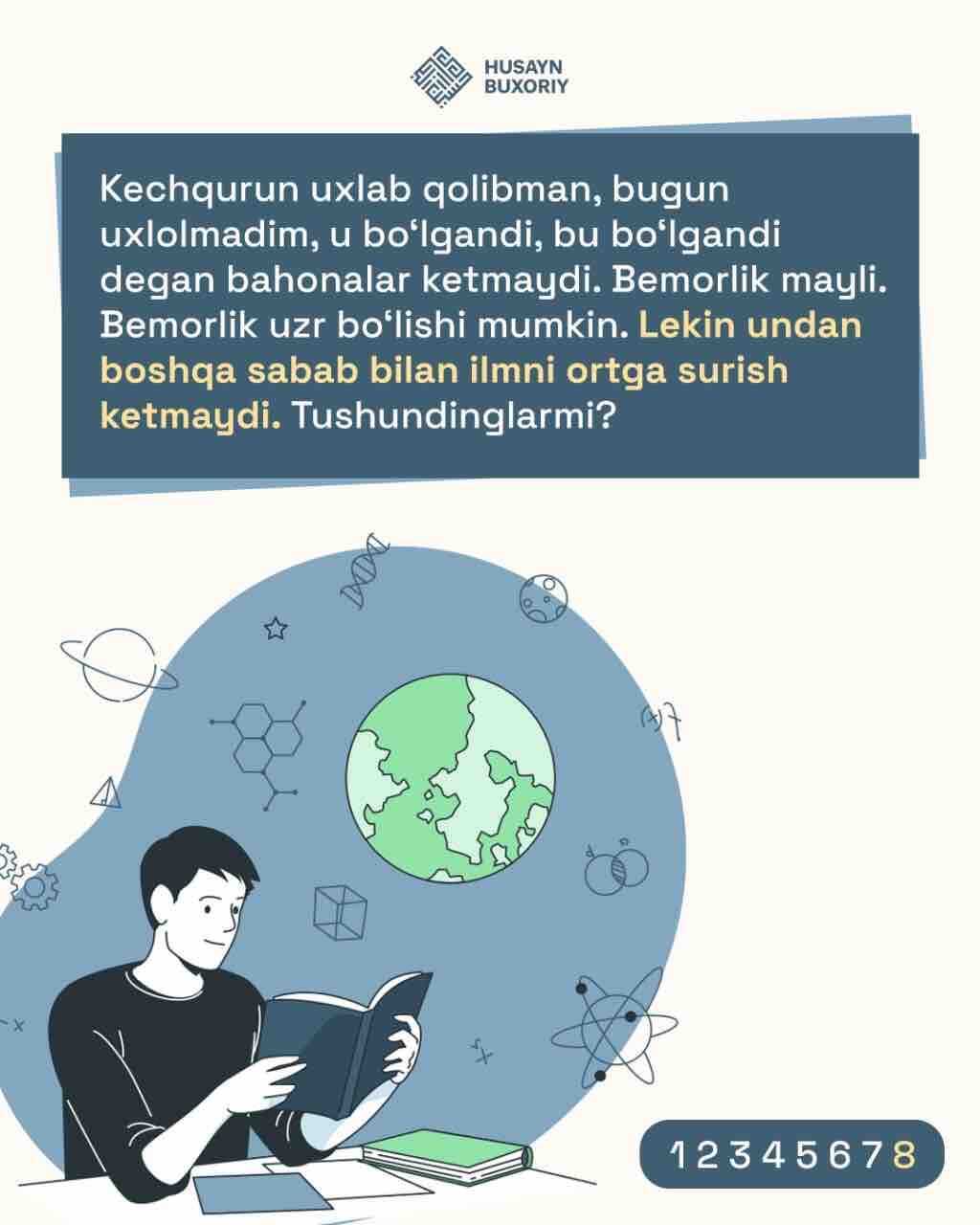 ✅ Ustoz Husayn Buxoriydan har birimiz, xossatan, tolibi ilmlar uchun kerakli nasihat!