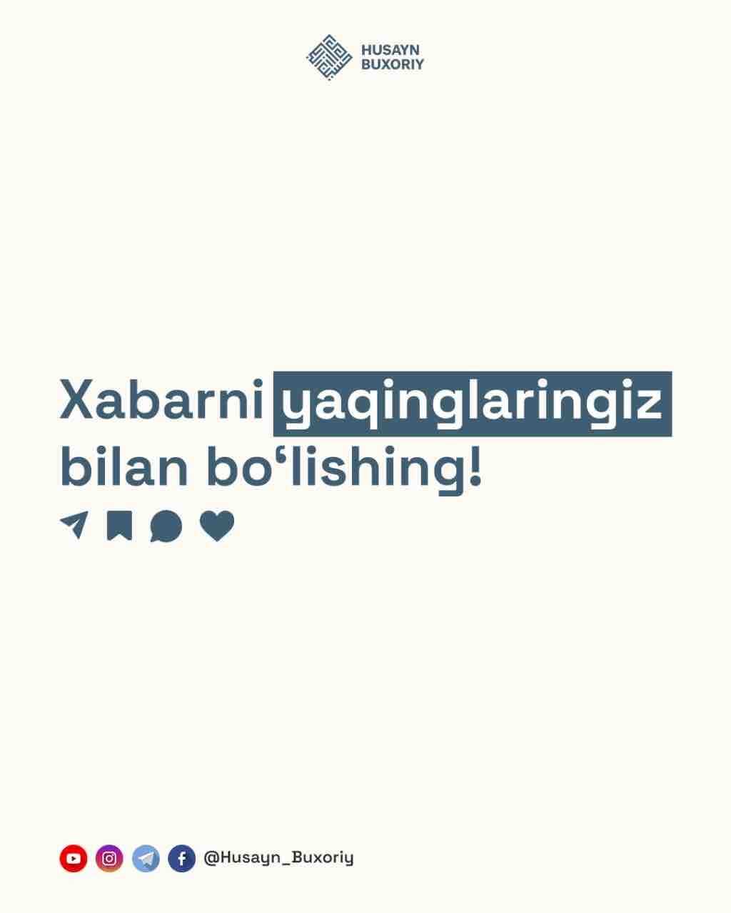 ➡️ Xabarni azimatni lozim tutishi kerak deb bilgan yaqinlaringiz bilan boʻlishing