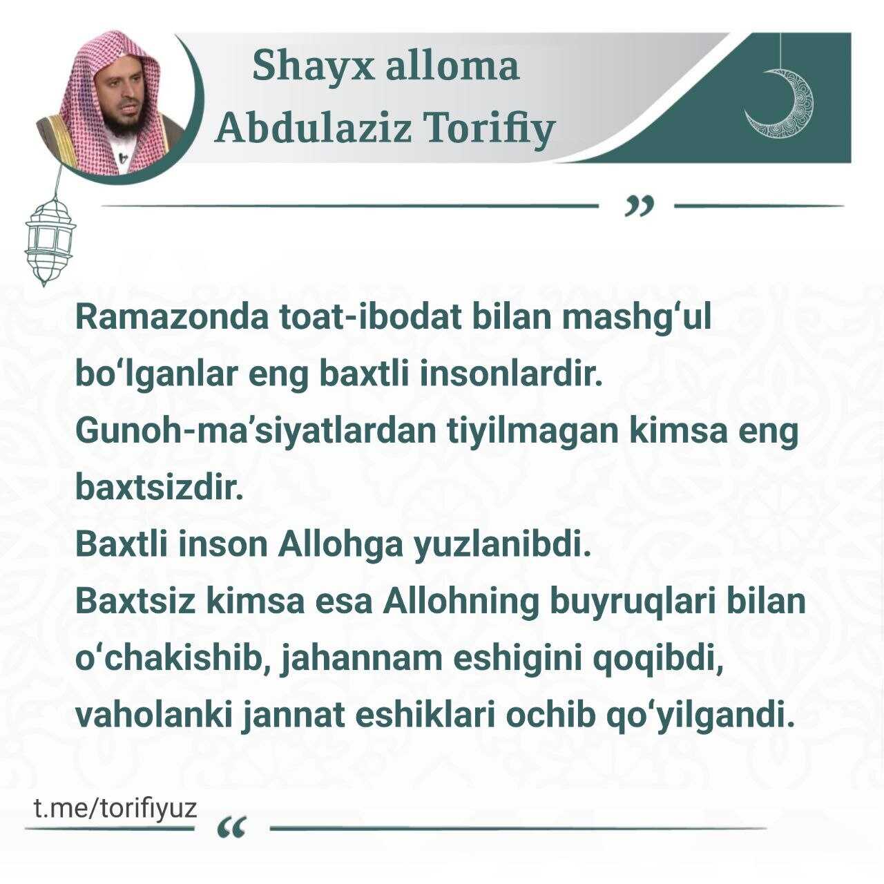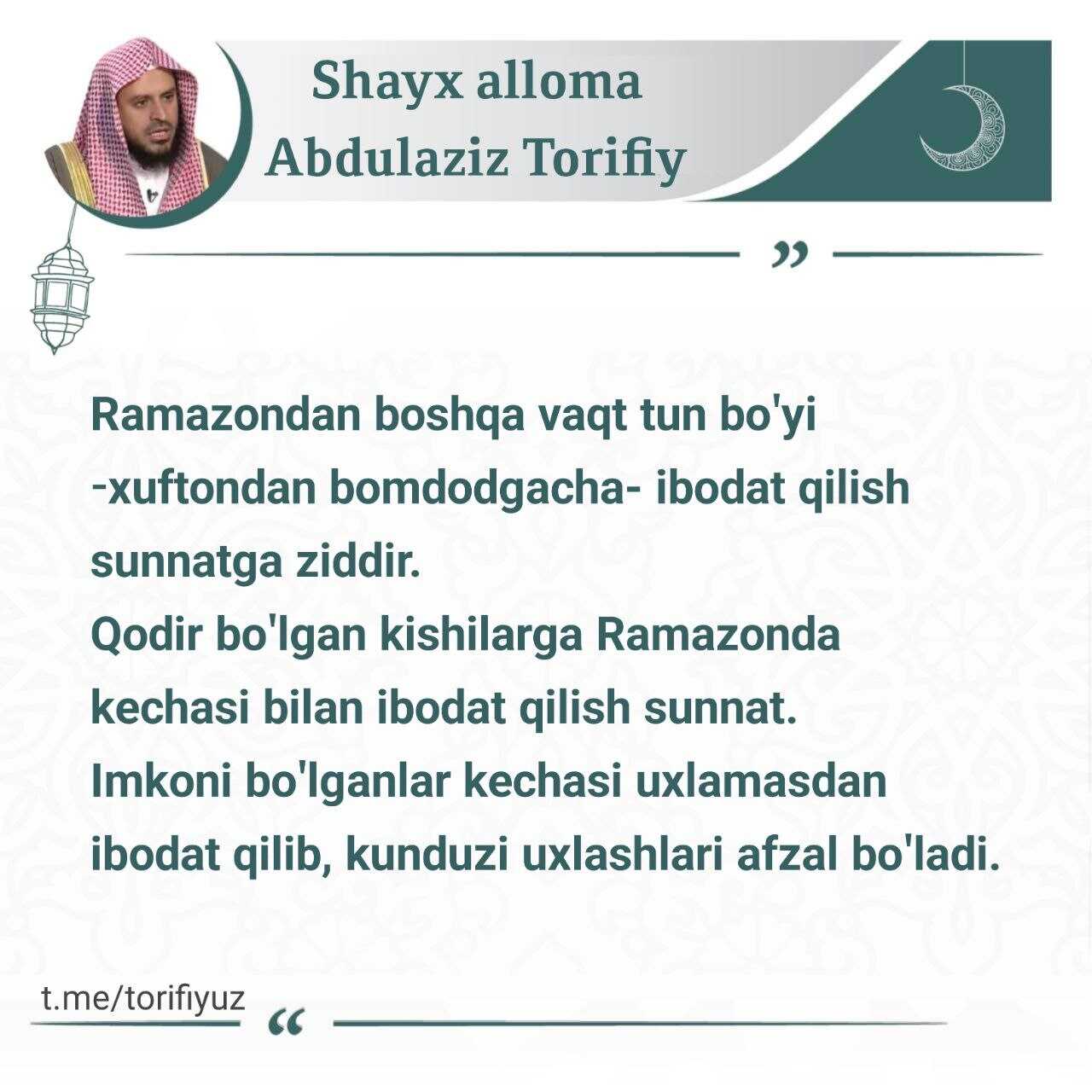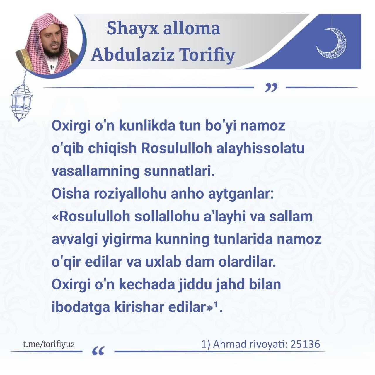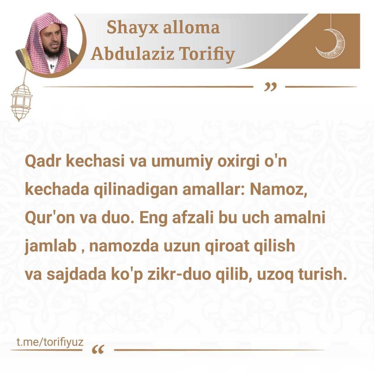 U atigi bitta kecha, ammo agar siz unga erishsangiz, hayotingiz butunlay yaxshilik tomonga o‘zgaradi va Allohning izni bilan do‘zaxga kirmaysiz.