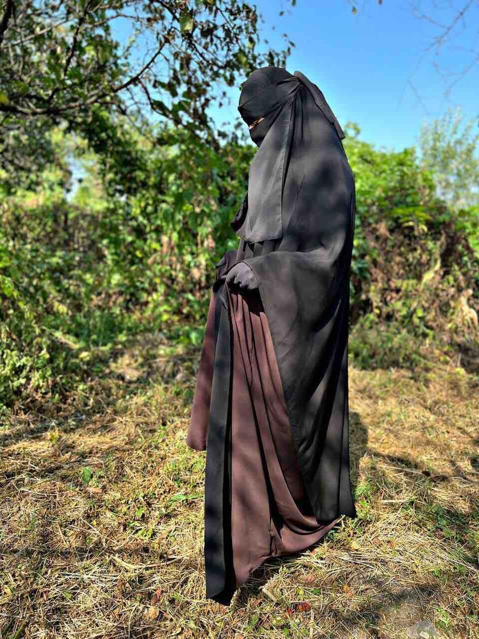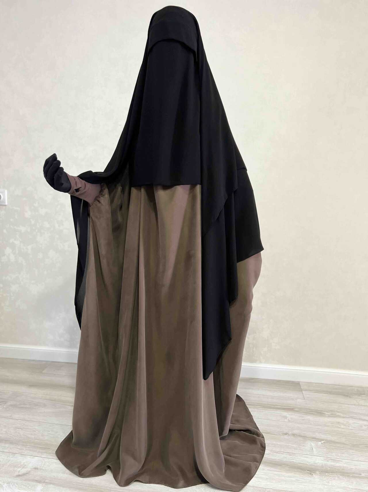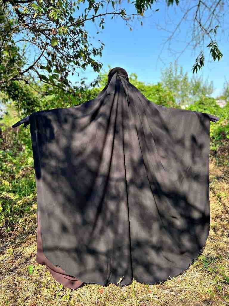 Абаи летучки из Мединского крепа! Соблюдены все условия хиджаба! Сверху абаи широкая люльва( типа издаль без рукавов). Смотрится это конечно раскошно !