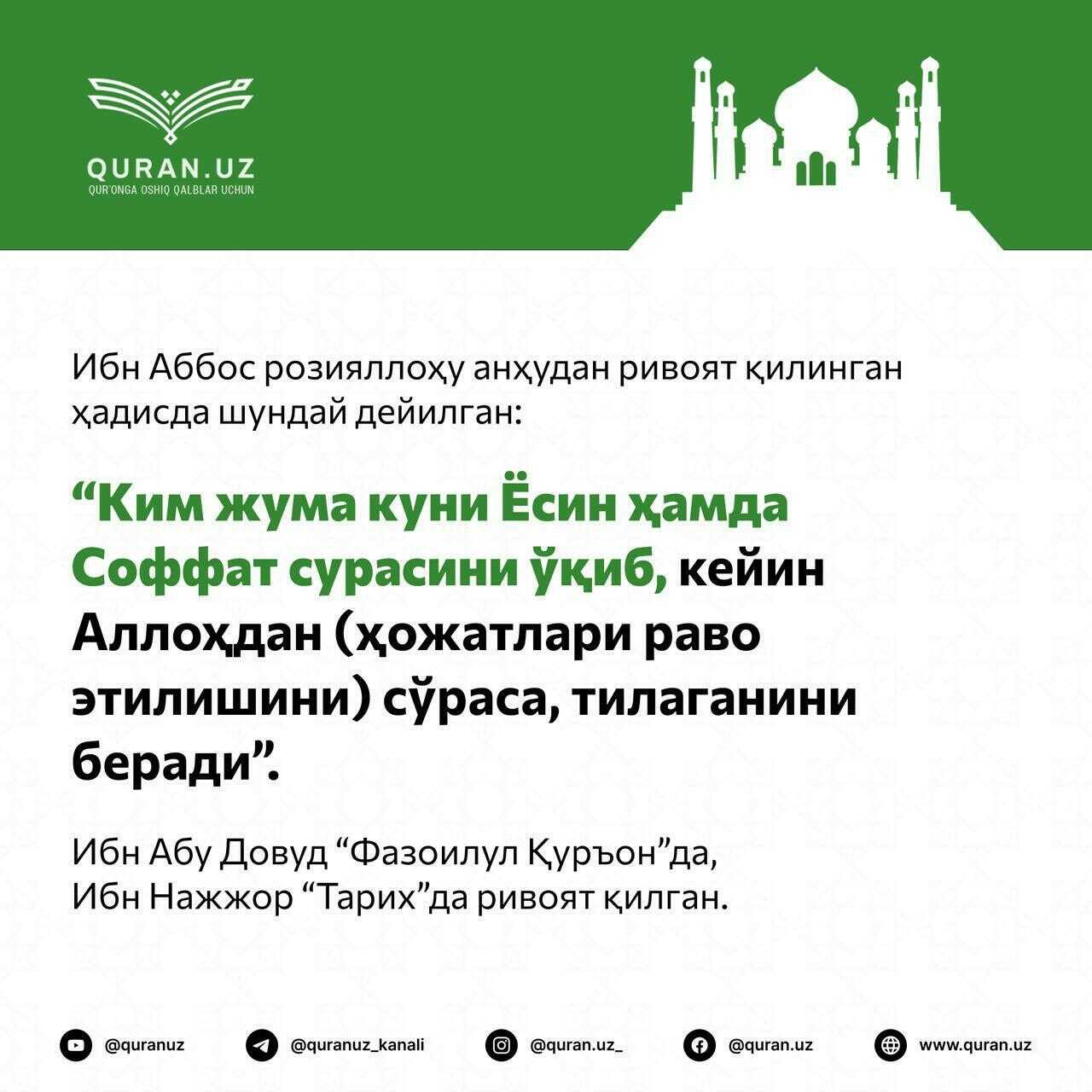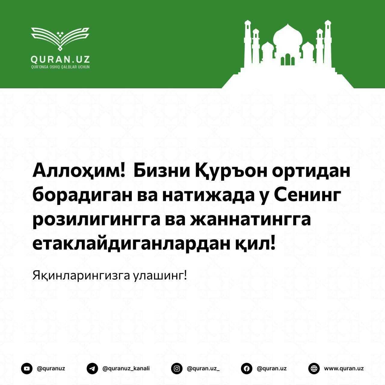 🟢 Аллоҳ таоло айтади: «Ким Аллоҳга тақво қилса, унинг йўлини очиб қўядир. Ва унга ўзи ўйламаган тарафдан ризқ берур. Ким Аллоҳга таваккул қилса, бас, унга У Зотнинг Ўзи кифоядир». Талоқ сураси, 2,3 – оятлар