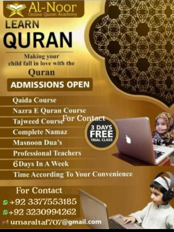 Assalamualaikum If you want to teach your children or you want to read Quran online with three days free trial then contact me now on my whatsapp number +923377553185