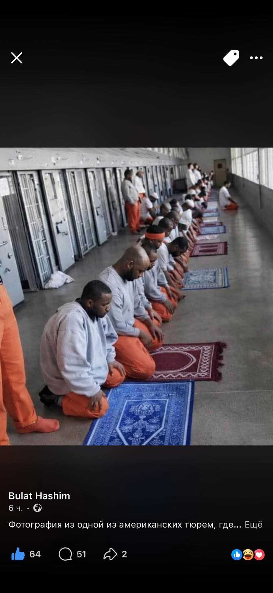 Фотография из одной из американских тюрем, где уровень принятия ислама настолько высок, что в некоторых тюрьмах штата Аризона треть заключенных одновременно приняли ислам.